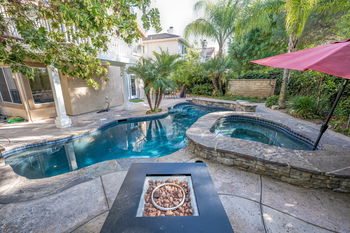 Outside, the backyard is an entertainer’s dream with a private pool and spa, complete with a brand-new heater and color-changing lights. Control it all from your phone with the iAqualink remote system, adding ease and luxury to your lifestyle. For extra security, enjoy the Nest Doorbell Camera and Nest Yale Lock for remote entry.